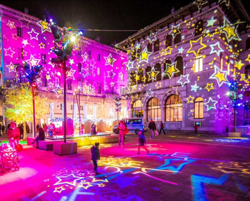 Depending on the circumstances, installation may involve the use of aerial equipment or additional installation of brackets and supporting structures. However, this is more of an exception than the rule. Most often, existing structures (roofs/walls of buildings, columns, trees) are used. Projection equipment is interesting because it does not require complex installation schemes and heavy cable laying routes. The work takes a little over two days. To achieve the optimal image, we carefully adjust the equipment. The result of this stage is a clear image and the activation and deactivation of the equipment according to the established schedule.