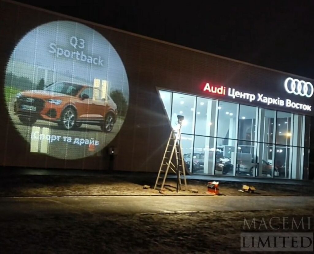 As for similar advertising methods, the cost of using outdoor projectors is much lower, not to mention the fact that you get a huge image. You won’t have to install additional structures for your advertising. Building facades will retain their attractive appearance, and the advertising will only appear in the evening.