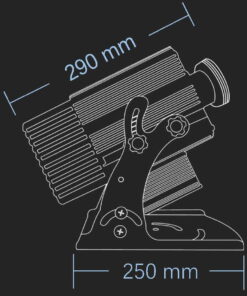 - Проектор має алюмінієвий, герметичний корпус, скляну оптику, світлодіод GREE/OSRAM